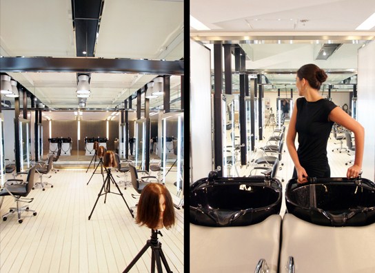 As a series of mirror panels are suspended from a ceiling grid system leaving the floor surfaces free from any fixtures for hygiene and cleanliness. The floating mirrors clearly defined by the grid system above and clustering configurable pocket spaces.